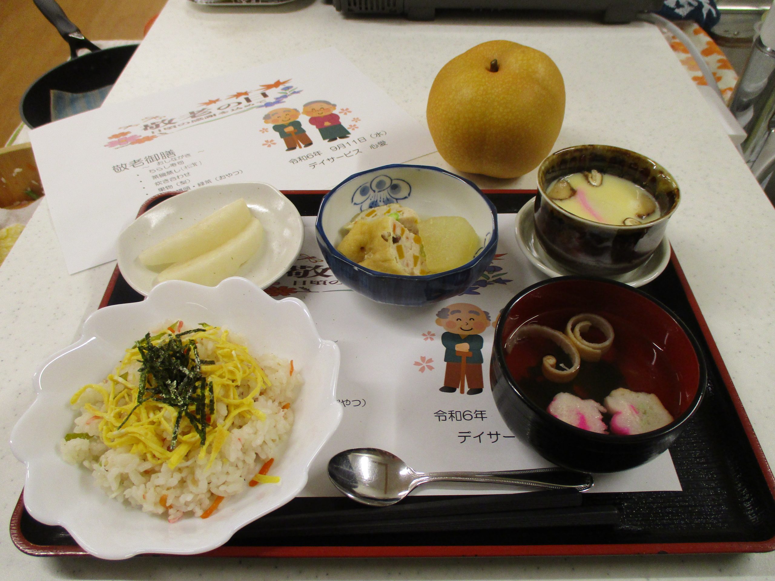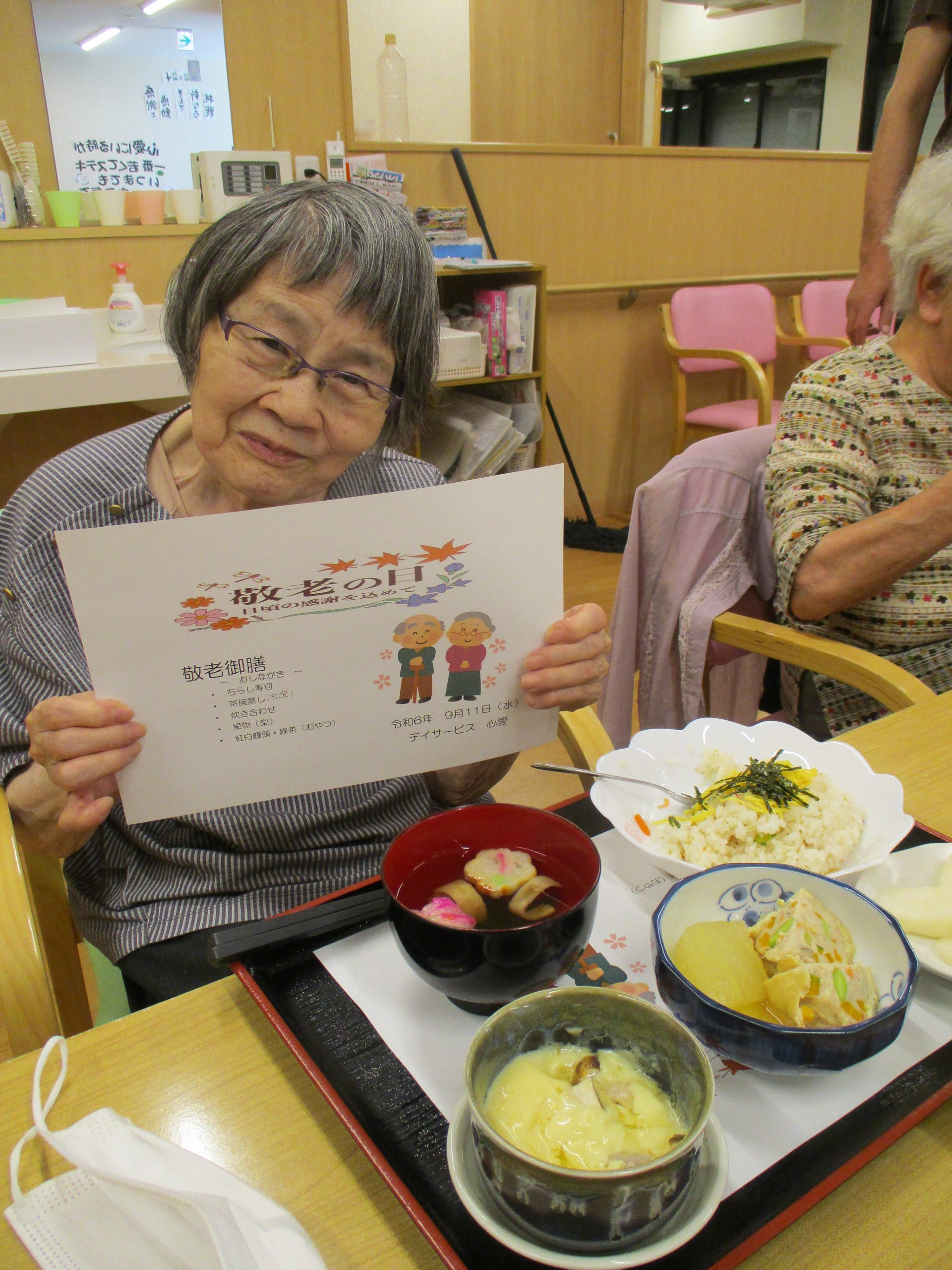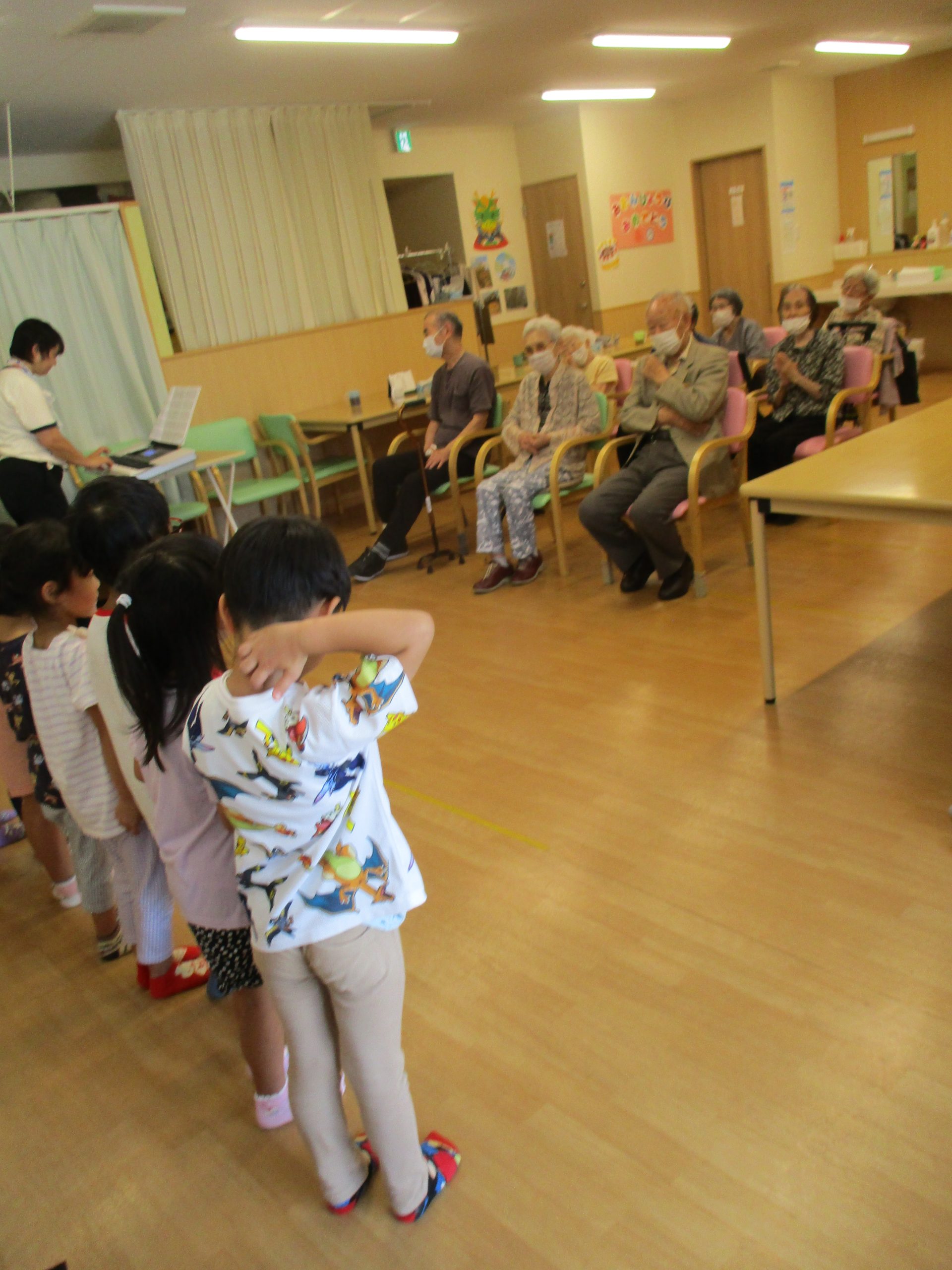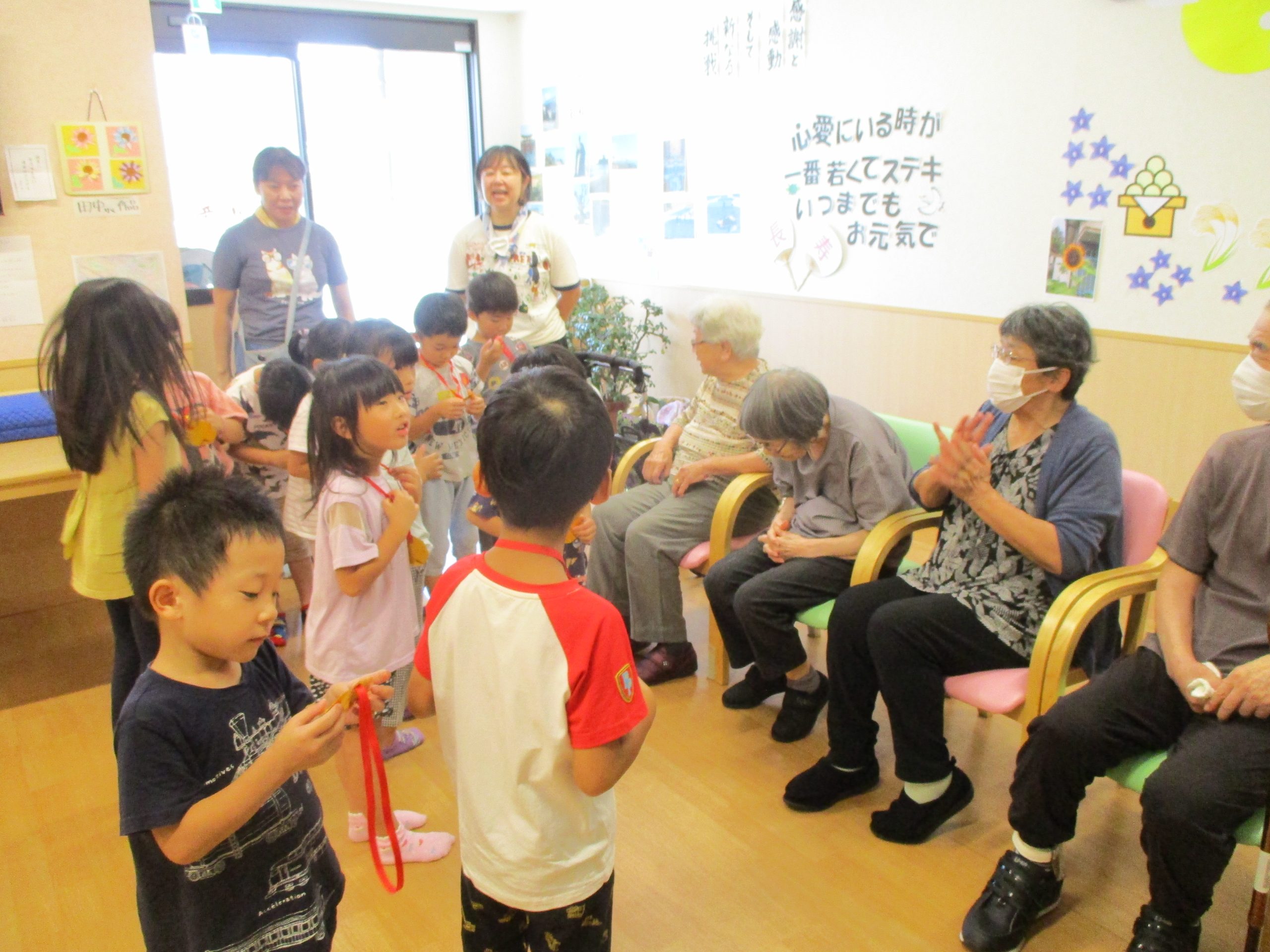 敬老会part1 2024/10/05 9月11日敬老会part1を開催しました。近くの保育園の子ども達も来てくれて歌を歌ってくれました。 昼食はちらし寿司、おやつはお饅頭を頂きました。記念品としてキーホルダーを作りました。 皆様、良い笑顔をされておりました。 part2もお楽しみに!