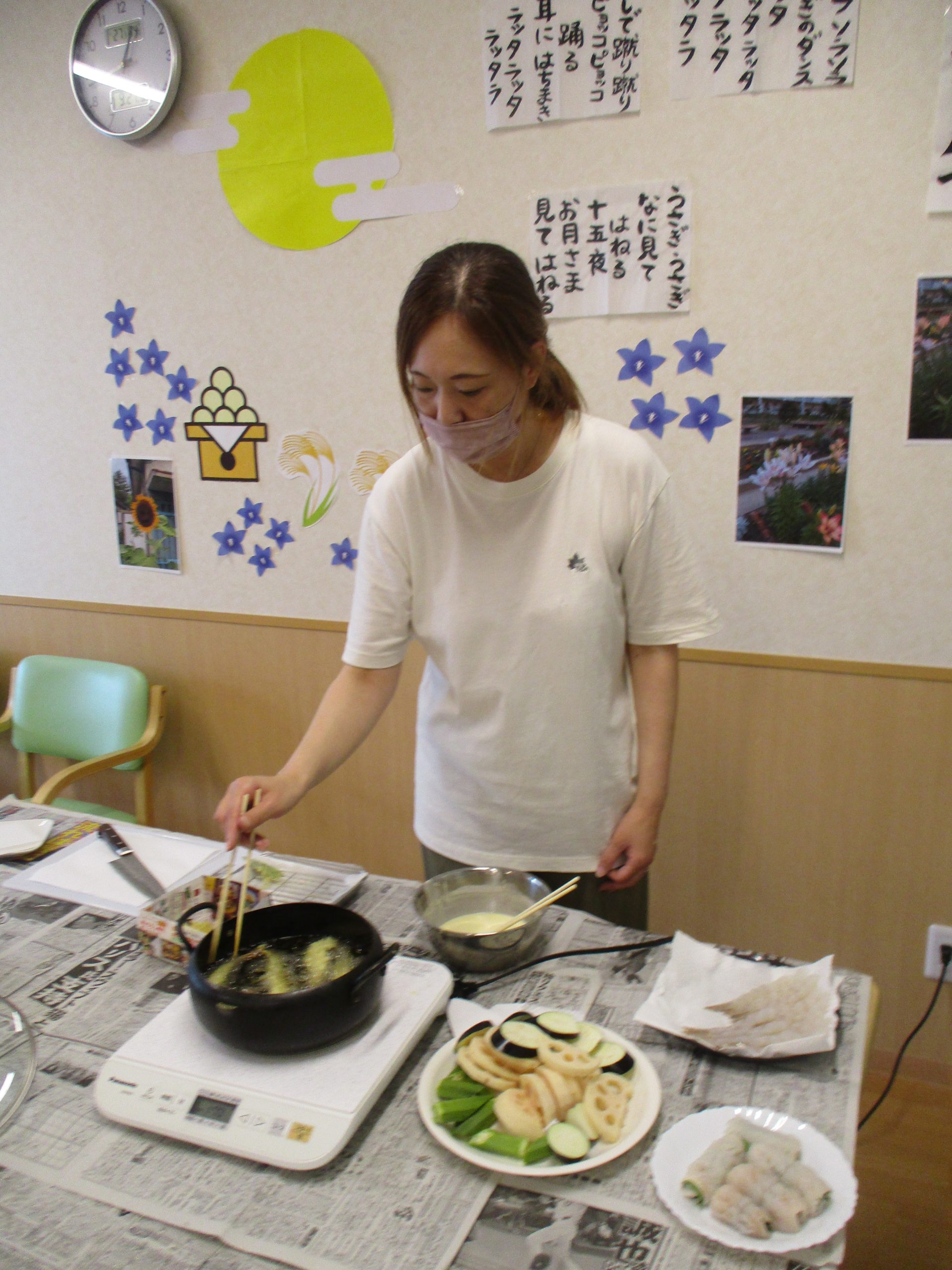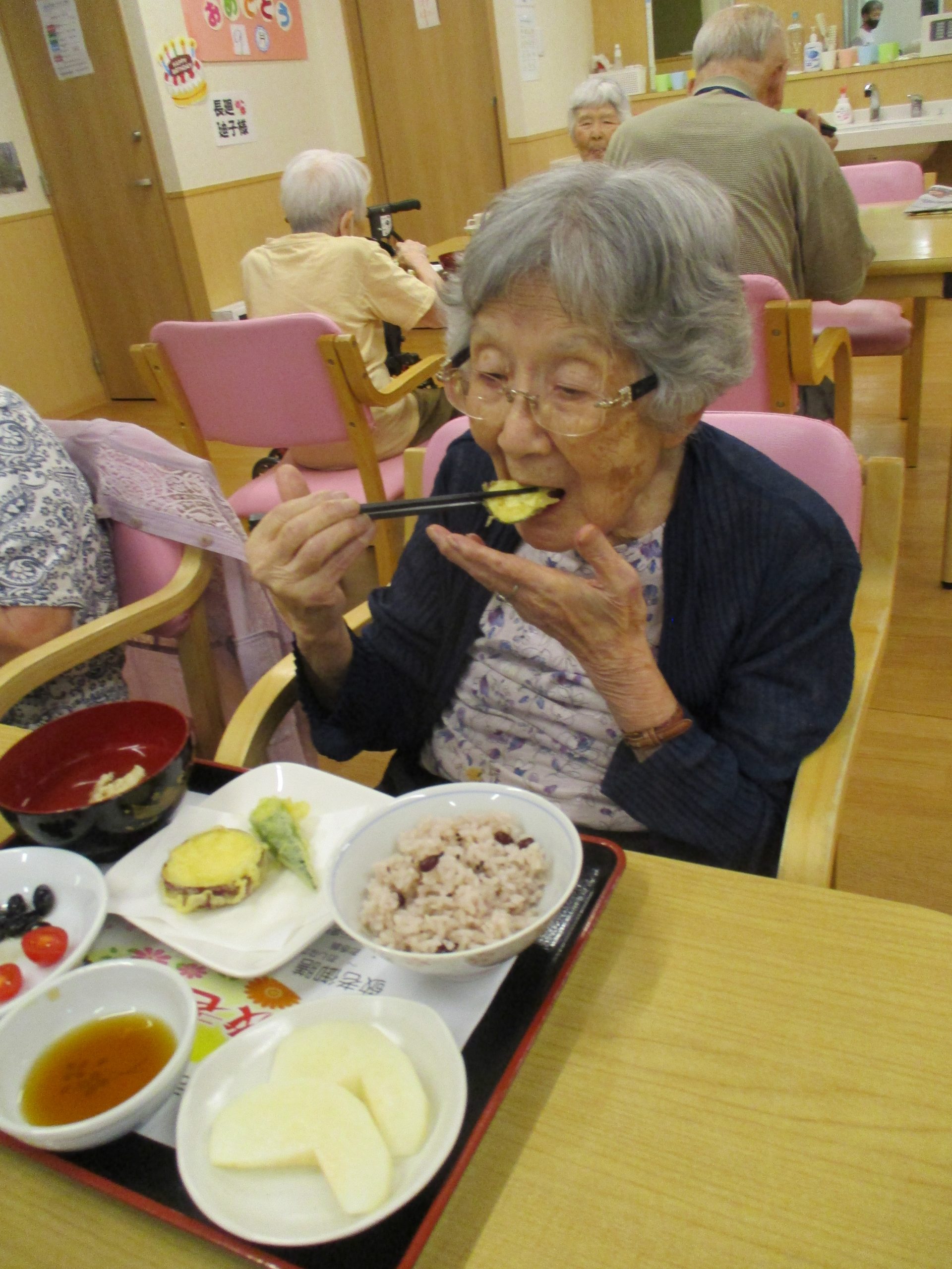 敬老会part2 2024/10/05 9月21日に敬老会part2を開催しました。 今回は揚げたての天ぷらを召し上がっていただきました。 えびや鱧に舌鼓。お赤飯も炊きましたよ。 心愛で一番のお姉さんも大変満足されておりました。