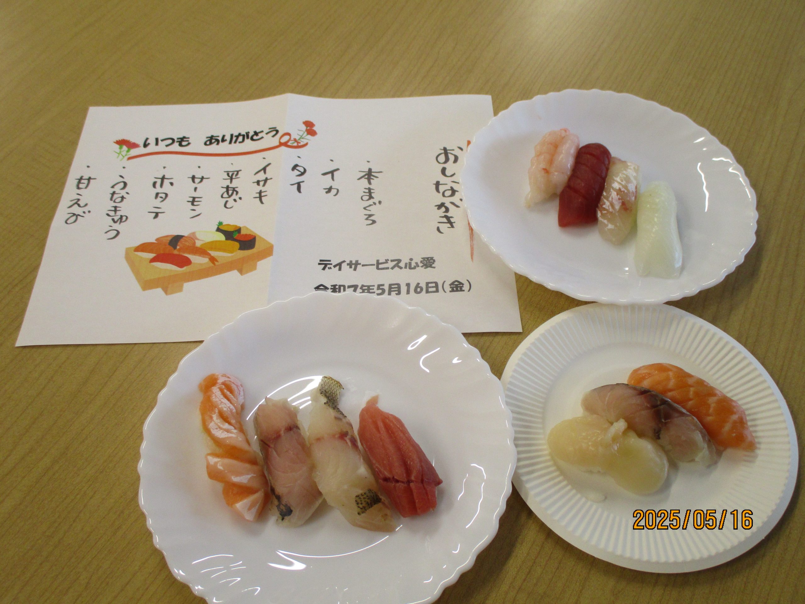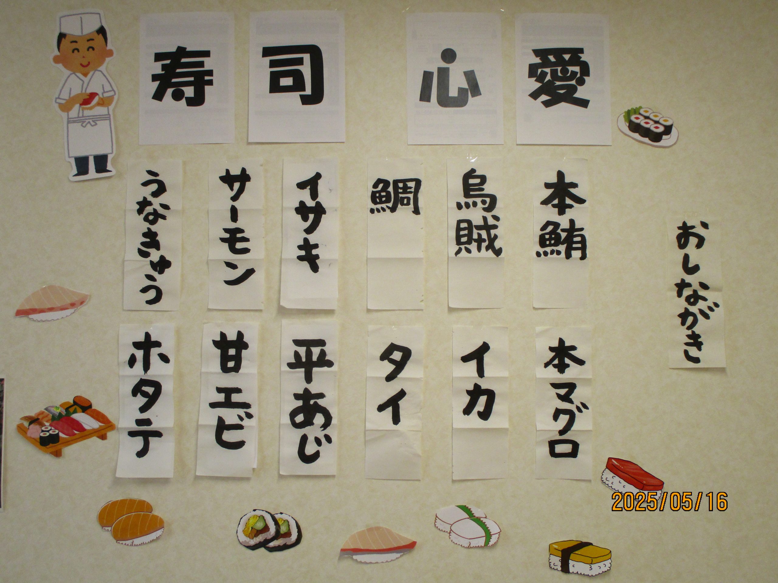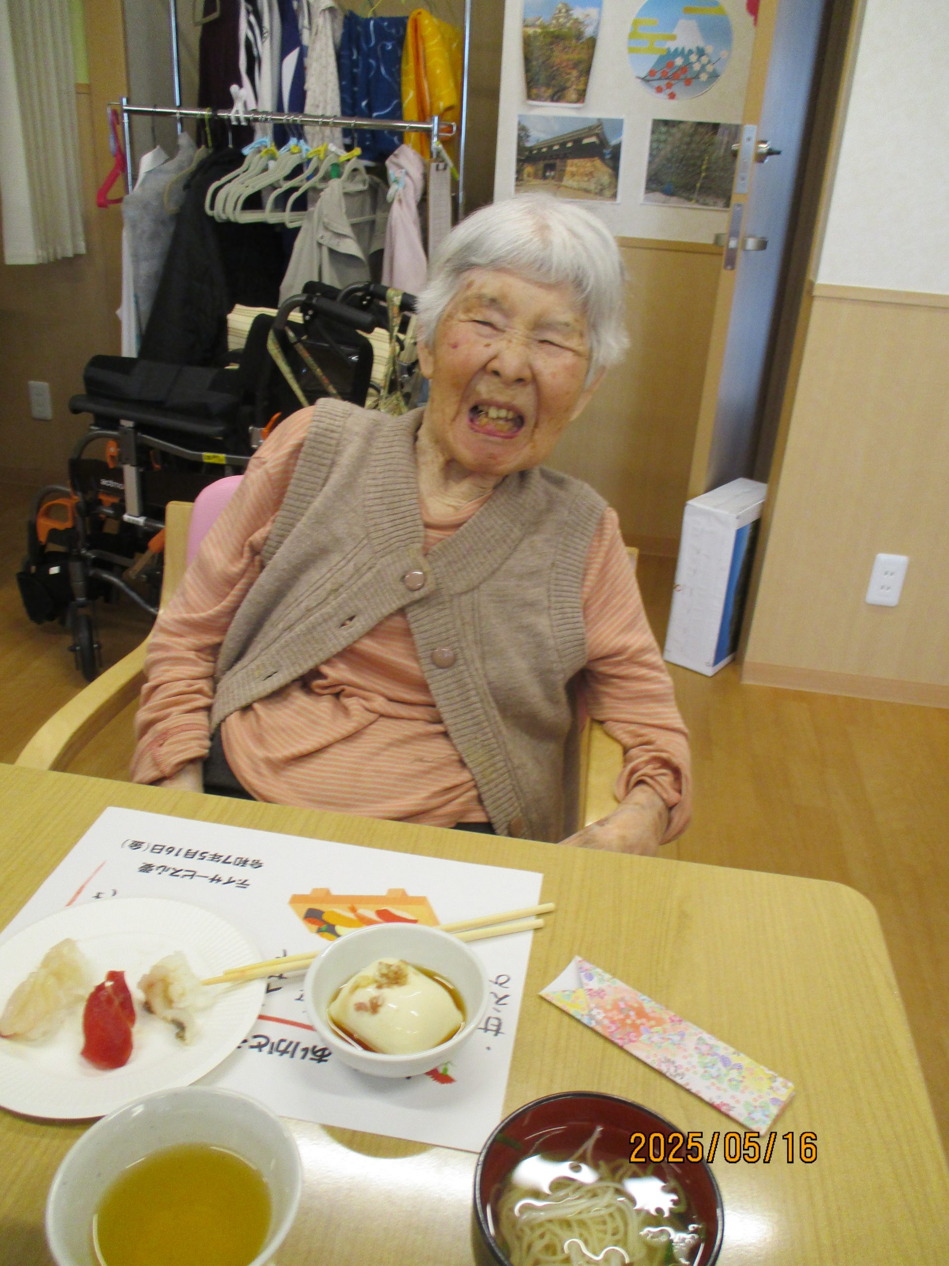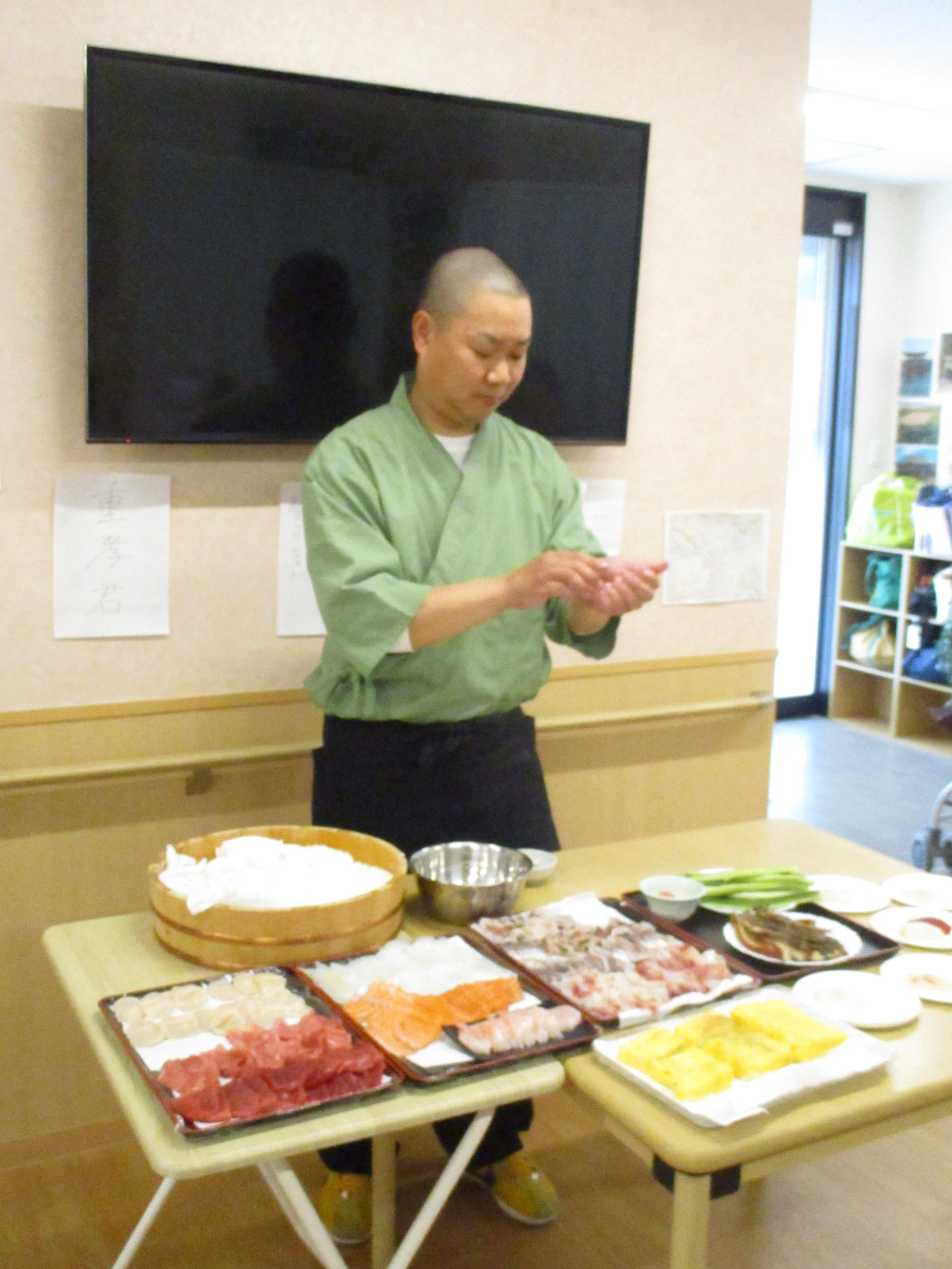 母の日のイベント 2025/06/09 母の日は寿司職人さんが来てくれておいしいお寿司を堪能しました。 気仙沼のマグロや明石の鯛、旬のイサキなどバラエティー豊富なラインナップでした。 おいしいお寿司は皆様を笑顔にしてくれました。