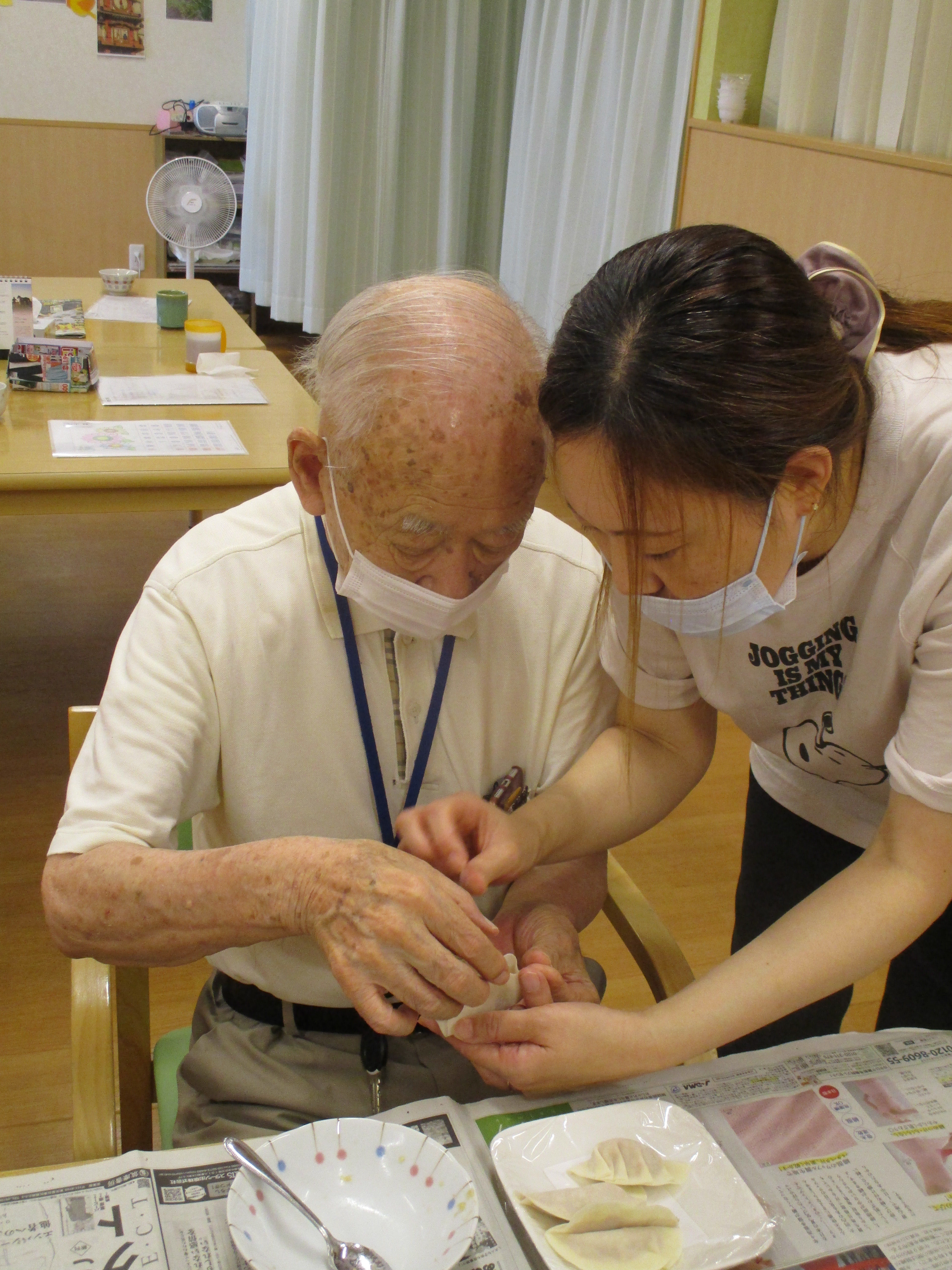 みんなで餃子を包んで美味しく食べました。初めて作る方も上手に出来ました。ビールがなかったのが少し寂しかったですね。次は何を作って食べるかリクエストしてくださいね。