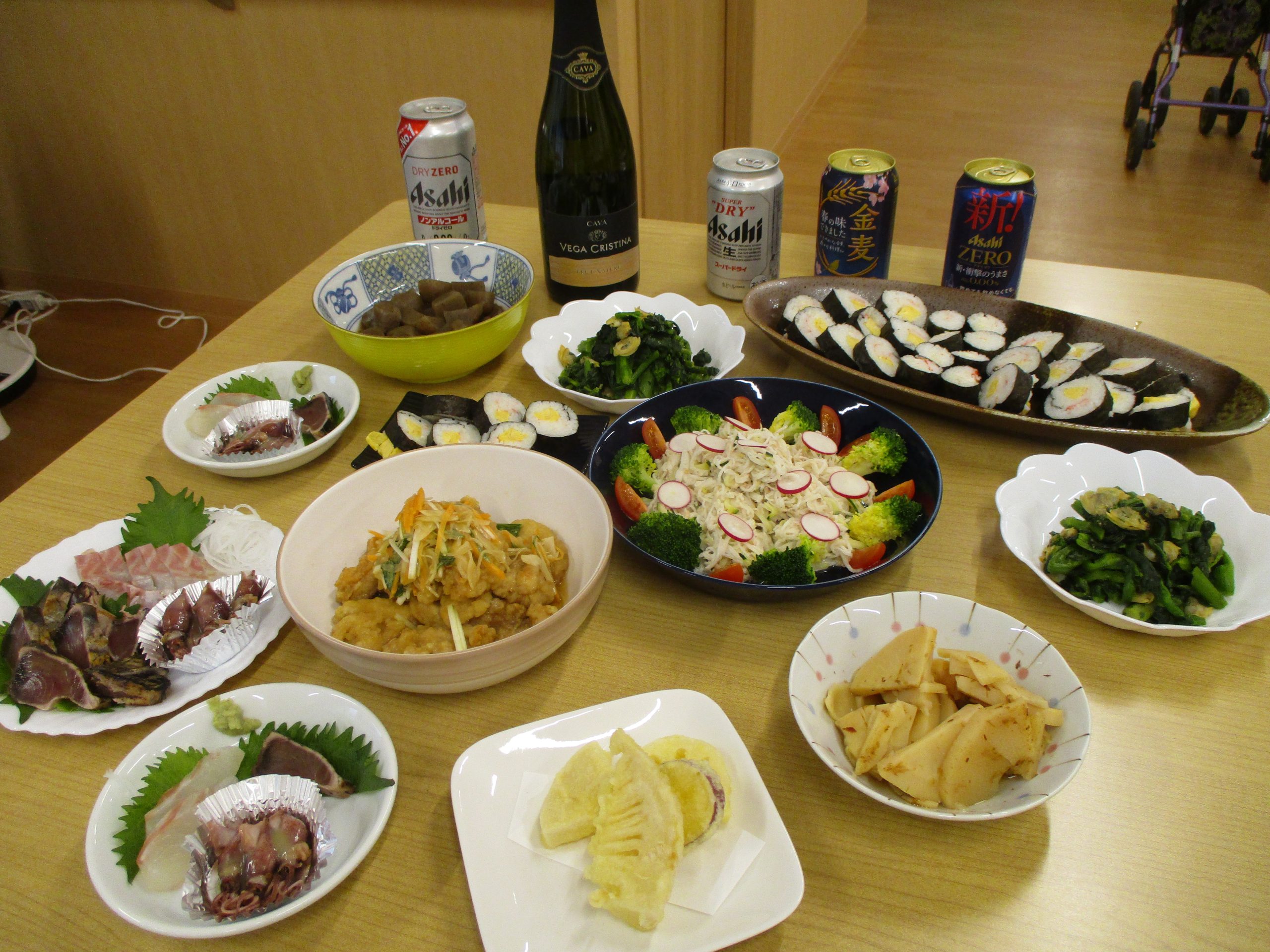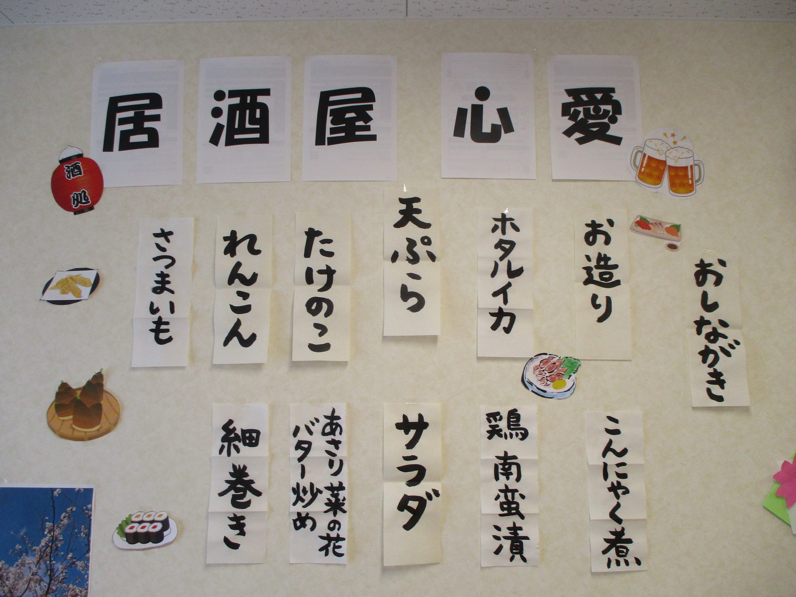 4月12日 第2回 居酒屋心愛!! 2025/04/27 大好評だった居酒屋心愛をまたまた開催しました。 今回は初カツオ、ホタルイカ、桜鯛やたけのこの天ぷらなど旬の食材で 皆様大満足でした。みんなで一緒に歌を歌ったり大盛り上がりでしたよ。